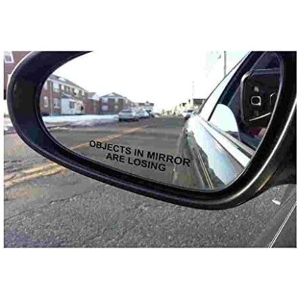 2X Objects in Mirror are Losing Decal Black Etched Glass Funny Sticker (Pair)