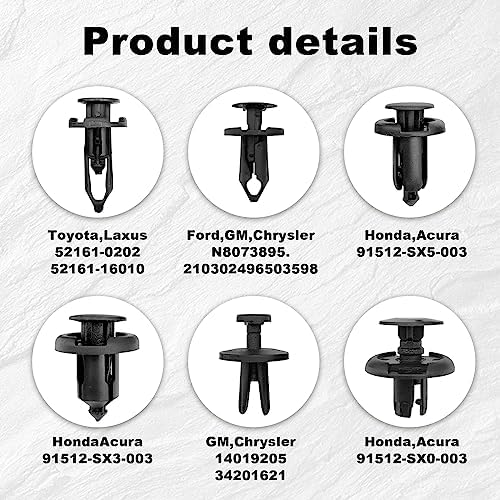 Wide Application: Push-in cage kits to meet your different needs. Hoods The replacement of the splash plate holder is common to most models. Widely used in automotive panels, Decorative panel clips, Door trim clips, Door panel clips, Bumper clips, Fender panel clips, For Ford Toyota Acura GMC Chrysler Lexus etc.