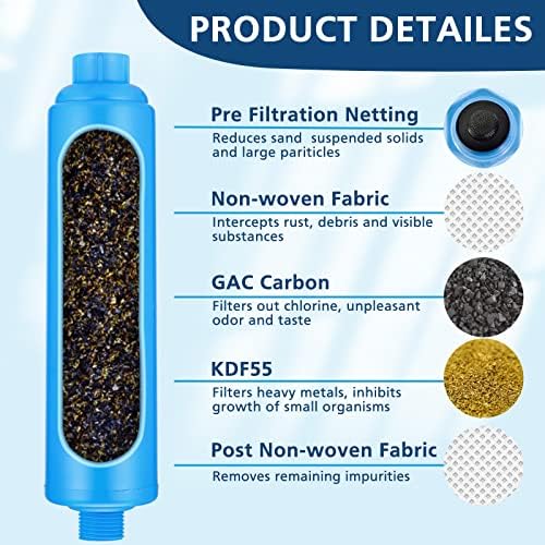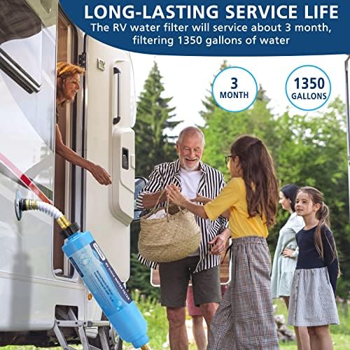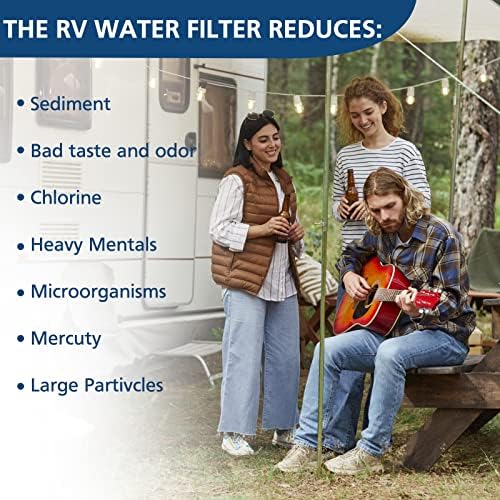High efficient Filtering: This water filter for rvs and campers reduces bad taste, odors, and chlorine, Reduces sand intercepts rust, debris, and visible substances suspended solids and large particles, heavy metals, in drinking water