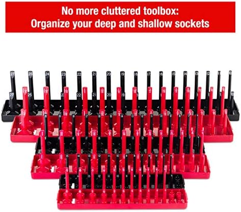 FAST TO RECOGNIZE – Each posts marked with clear socket sizes for instant identification to save your time. Red SAE and black Metric socket tray make it easy to distinguish when they mixed