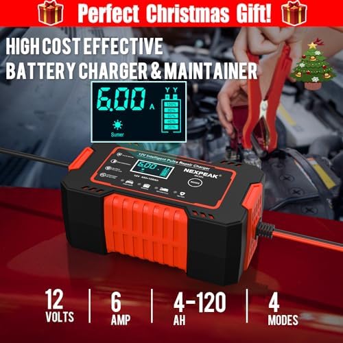 【HIGH-EFFICIENCY PULSE REPAIR】battery charger automotive detects battery sulfation and acid stratification, take newest pulse repair function to restore lost battery performance for stronger engine starts and extended battery life. NOTE: can not activate or charging totally dead batteries.