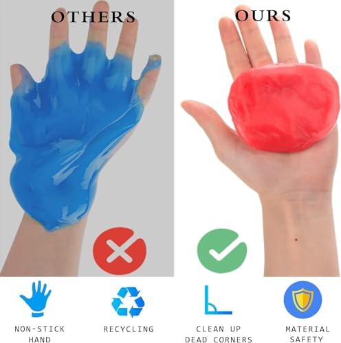 HIGH-TECH CLEANING MATERIAL& NO STICK HANDS: Car cleaning gel is made of high-tech material with The scent of natural flowers and herbs. Our car cleaning putty has been readjusted the proportion of each component so as to make its elasticity more stronger. No sticky hands or broken, and high efficient to clean dust or debris. car slime for cleaning pick up all dust and debris and leaves no residue.