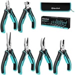【PACKAGE INCLUDING】 This precision pliers set includes 5-inch mini long nose pliers, 5-inch mini bent nose pliers, 5-inch mini linesman pliers, 4-inch mini end cutting pliers, 6-inch needle nose pliers, 4-inch diagonal pliers, and a compact pouch.