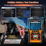 【More Accurate 12V Battery Analyzer】Displays multiple battery conditions, such as SOH (State of Health), SOC (State of Charge), Voltage,Current, Rating and analysis results; works on regular flooded, AGM flat plate, AGM spiral and GEL batteries with 100 to 2000 CCA. The cranking test for analyzing whether the starter motor is working properly. The role of the charging test is to check the status of the charging system to avoid damage to the battery due to overcharging or incomplete charging.