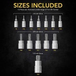 PREMIUM – 13-Piece set, Featured a wide range of Torx Bit Socket. Crafted and Designed with superior materials for increased torque and unmatched hardness.