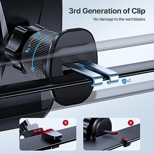 【Easy Install & 360° Rotation】For magnetic car vent mount is very simple to install thanks to the unique double hooks clip design. Simply place it on the air outlet blade of the car and flip the knob to change the length of the clip hook to fit the socket. Installation is completed. For magnet car phone holder mount is One-hand operation design. Just put your phone on the car phone mount magnetic before departing. Free your hands completely