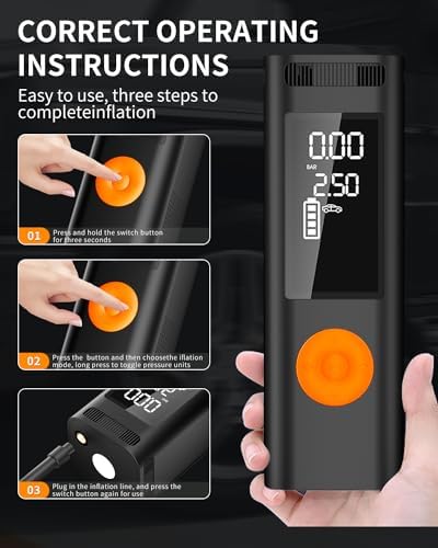 🛟【4 Units 5 Modes】Car tire compressor click the switch button to switch between Custom → Car → Motorcycle → Bicycle → Ball. Each mode has an adjustable range and an initial recommended value, long press the conversion button to choose from four types: PSI → BAR → KPA → kg/cm2. it is also an excellent choice for car air pump and bike pump.
