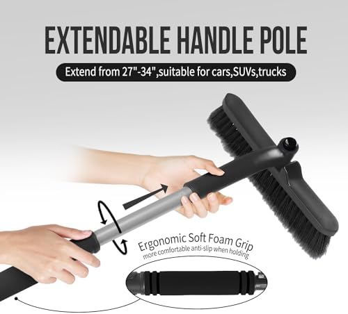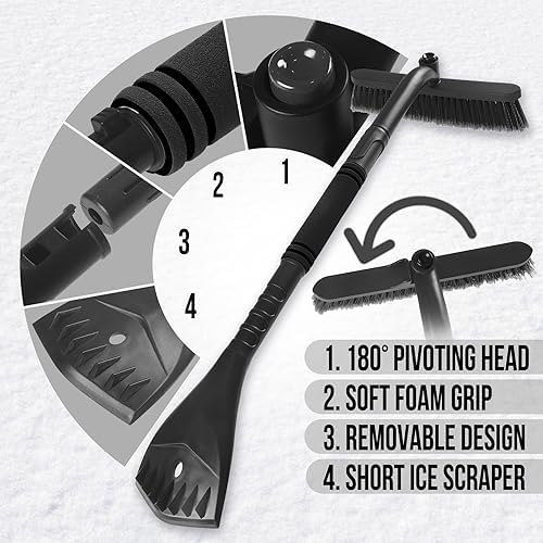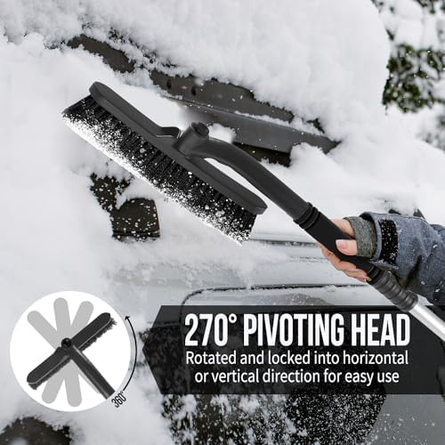 JOYTUTUS 47.7″ Extendable Snow Brush and Ice Scraper, 270° Pivoting Snow Scraper