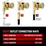 Multiple Outlet Connectors: Will fit both the female 9/16″ x 18 nut or the male 5/8″ x 18 fitting. It also comes with a standard 1/4″ barbed fitting.