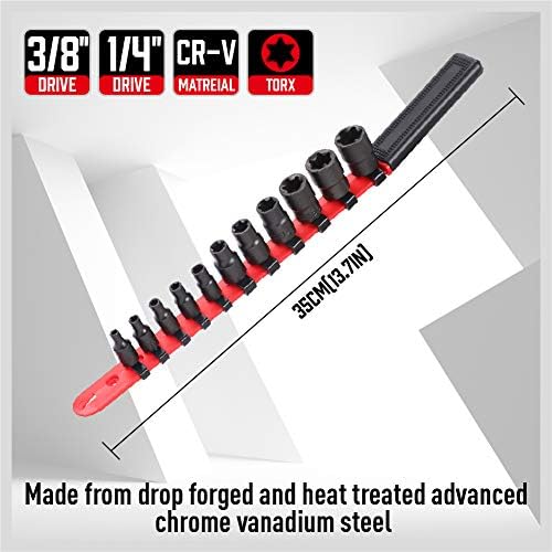 ORGANIZATION ESSENTIAL – The SEDY 11-Piece E-Torx Socket Set includes a red single handle socket organizer, keeping your high-quality black E-torx sockets arranged and easily accessible.