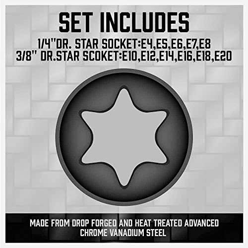 LARGER SIZE DIVERSITY – Alongside smaller sockets, the set includes six 3/8″ Drive Sockets: E10, E12, E14, E16, E18, E20, ensuring that larger torque tasks are also catered to in this all-in-one kit.