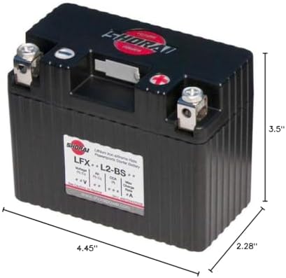 This Lithium Iron Powersports battery is a 14Ah 12 Volt “L” polarity, Case Type 2 battery. It is ultra-light and weighs one fifth the weight of lead-acid batteries on average. The battery is safe and no explosive gases during the charge. It features a faster cranking for a better start.