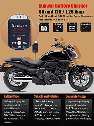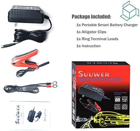 【2】Adapts to all kinds of 6V & 12V battery for car, motorcycle, lawn mower, atv, lawn tractor, truck, suv, boat, classic car, emergency batteries and more. (Note: If the battery power is lower than 3.6v, it is a bad battery and cannot be charged normally)