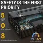 【LATEST QDSP TECHNOLOGY】With the same starting battery capacity, our jump box equipped with the latest QDSP technology has 3-5 times the current of the old jump starter. At the same time, through the subversive innovation of the battery/assembly structure, the start-up temperature is reduced by 50% to achieve temperature balance and escort your safety.